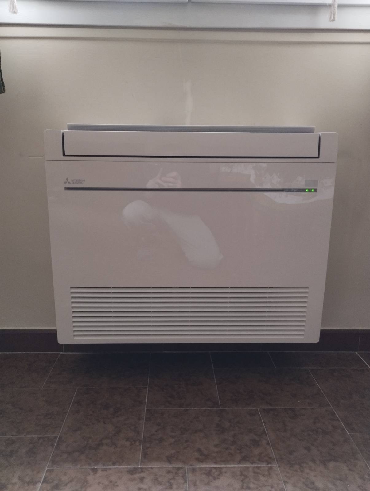 Nous avons donc fourni et posé une climatisation console de la marque MITSUBISHI de 5 kW de puissance afin de pouvoir chauffer le salon, le séjour et la cuisine avec les très bonnes performances de ce type d’appareil.